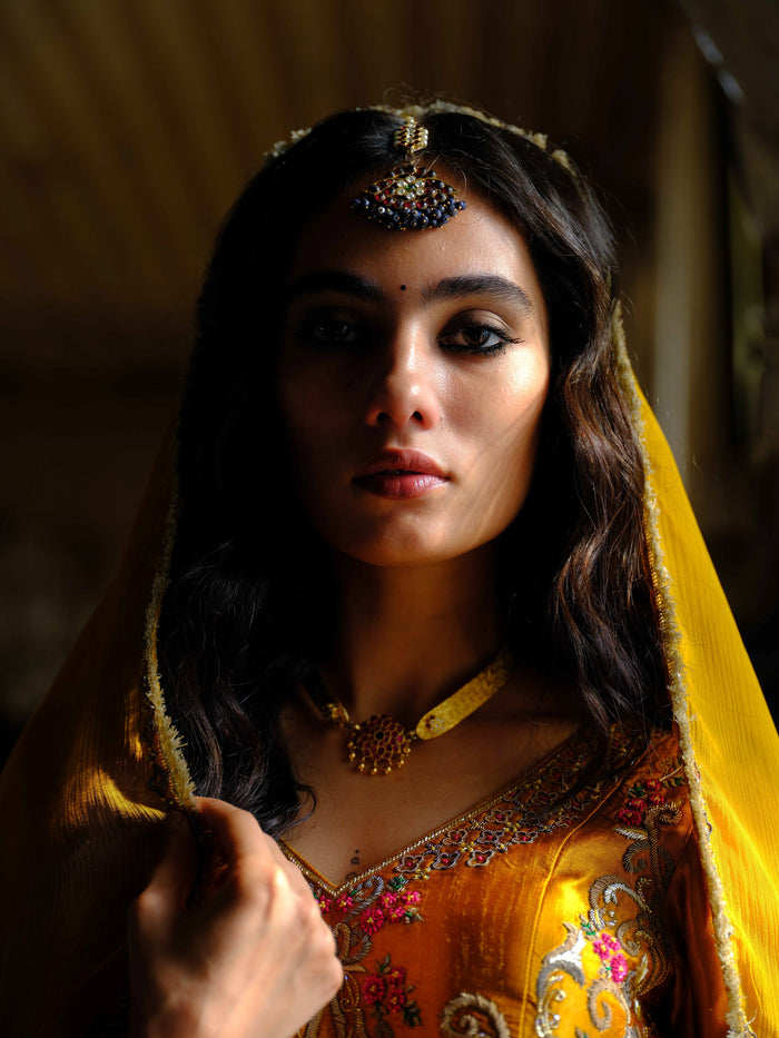 The Rising Story marks a moment where heritage meets renewal. Inspired by Indian art, Mughal gardens and heirloom craft, it brings aari, zardozi and mukaish to life in earthy hues and jewel tones. Flowing anarkalis, jackets and sarees move with quiet grace - an ode to the bride, timeless, radiant and ever rising.